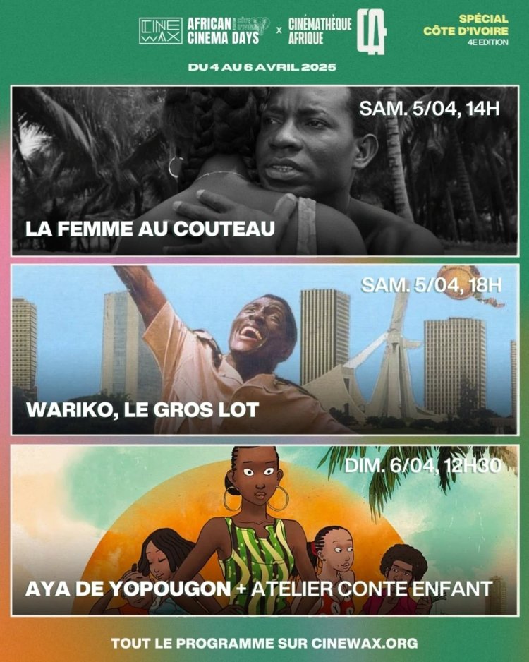 Le cinéma ivoirien brille sous les projecteurs de la scène internationale ! Du 4 au 6 avril 2025, Paris vibrera au rythme du septième art africain avec la 4e édition des African Cinema Days organisés par Cinewax et la Cinémathèque Afrique de l'Institut français. Pour cette nouvelle édition, la Côte d'Ivoire est à l'honneur, offrant au public une immersion dans son riche patrimoine cinématographique.